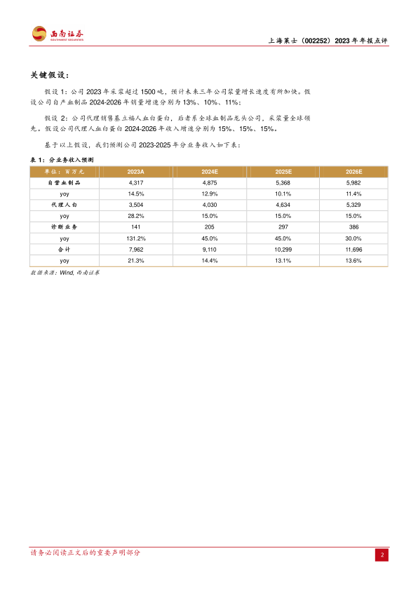 盈利预测与投资建议:预计公司2024-2026年营业收入分别为91.1亿元、103亿元、117亿元,归母净利润分别为23.6亿元、27亿元、30.3亿元。公司自营血制品业务盈利能力突出,代理进口人白提升产业地位,维持“买入”评级。