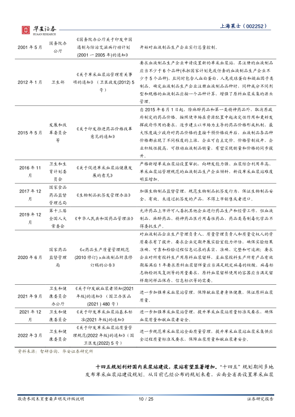 “十四五”规划期间,多地发布单采血浆站建设规划,预计在2024-2025年浆站获批有望加速,如内蒙古规划10个、河南规划7个、云南规划19个。行业集中度持续提升,天坛生物、上海莱士、华兰生物、泰邦生物、派林生物等头部企业占据了大部分浆站资源。截至2023年上半年,天坛生物拥有102家浆站,上海莱士42家,华兰生物32家。