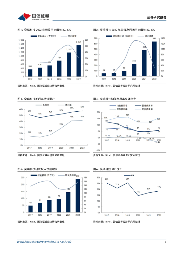 盈利能力进一步提升, 持续加大研发投入。 公司 2022 年毛利率/净利率/扣非净利率为 57.34%/41.23%/33.36%, 同比增加 2.09/0.42/4.57 个 pct, 公司毛利率进一步提升, 主要系产品结构不断优化, 动态产品占比提升。 此外,2022 年公司确认股权激励费用 5934 万元, 以及投资联影医疗和珠海冠宇产生公允价值变动损益 5030 亿元, 均对利润端造成影响。 费用端有所增长,2022 年销售/管理/研发/财务费用率分别为 5.61%/5.86%/15.41%/-4.01%,同比变动+0.69/+1.12/+3.14/-2.60 个 pct,主要系人员扩充、 加大研发投入以及股权激励成本所致。 截至 2022 年年底, 公司员工总数 1237 人, 同比增长 57%, 其中研发人员 408 人, 同比增长 59%, 占比 33%, 持续加大研发投入。