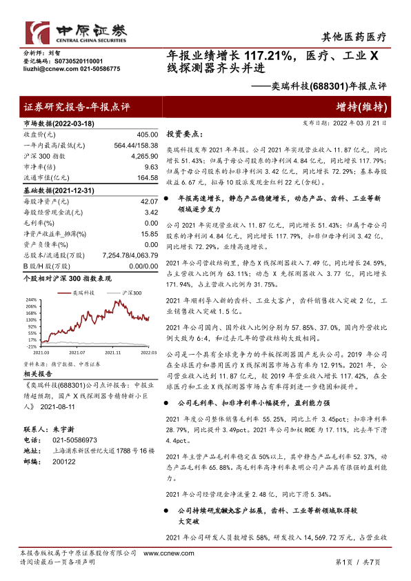 奕瑞科技在2021年展现了卓越的经营业绩,营业收入和归母净利润均实现高速增长,尤其在动态X线探测器和新兴的齿科、工业领域取得了显著突破。公司通过持续的研发投入和技术创新,巩固了其在全球X线探测器市场的竞争优势,并有效提升了整体盈利能力。受益于医疗数字化X线探测器的国产替代趋势以及新应用领域的市场拓展,加之产能的逐步释放,公司预计将进入一个快速发展期。尽管面临宏观经济波动、市场拓展不确定性及原材料成本压力等风险,但奕瑞科技凭借其强大的技术实力、多元化的业务布局和稳健的财务状况,具备良好的长期增长潜力。分析师维持“增持”评级,反映了对公司未来发展的积极预期。