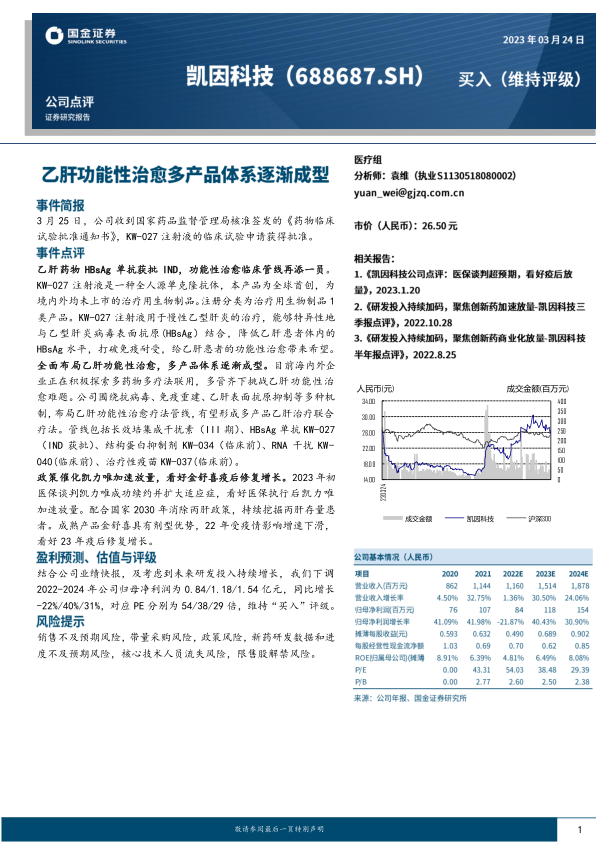 本报告核心观点在于,凯因科技在慢性乙型肝炎(CHB)功能性治愈领域取得突破性进展,其全球首创的全人源单克隆抗体KW-027注射液获得临床试验批准,标志着公司在乙肝功能性治愈管线布局上迈出关键一步。这一创新药物的加入,有望显著提升公司在乙肝治疗市场的竞争力,并为患者带来新的治疗希望。