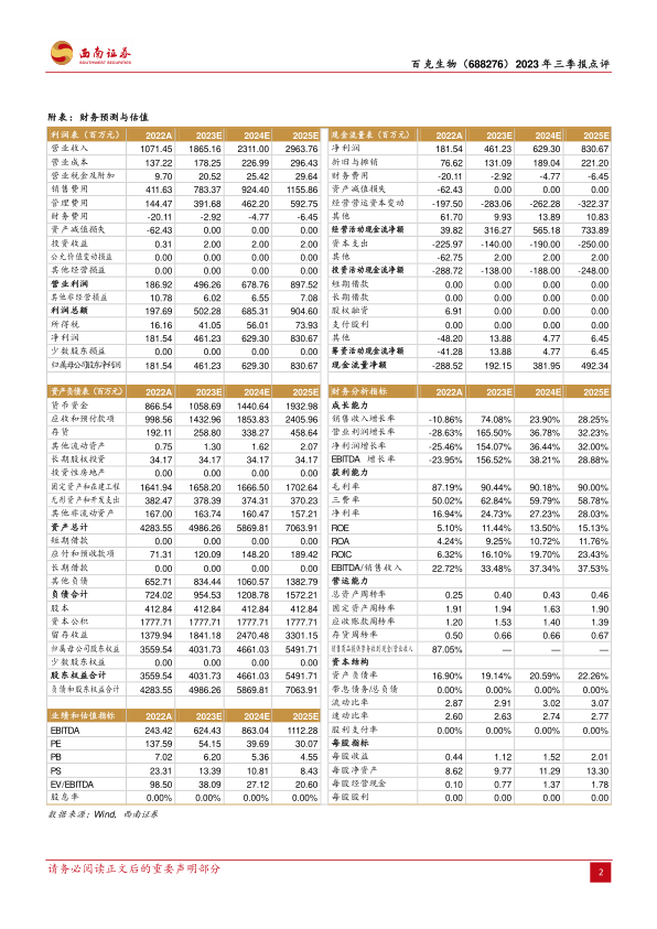 本报告对百克生物(688276)2023年三季报进行了深度分析,核心观点如下: