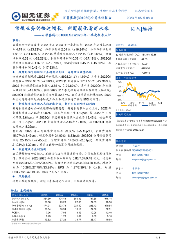 2023年一季度报告点评:常规业务仍快速增长,新冠弱化看好未来