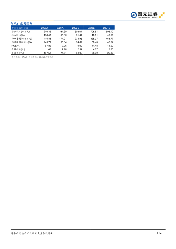 公司持续前瞻的产品开发和海外直销渠道的布局,公司长期发展值得期待;今年上半年受疫情略有影响。我们略微调整迎来预测,预计公司2022-2024年营业收入分别为5.06/7.09/9.96亿元,增速分别为31.44%/40.01%/40.59%;归母净利润为2.35/3.25/4.64亿元,增速分别为34.87%/38.48%/42.54%;EPS为2.94/4.07/5.80元/股,对应PE为53.02/38.29/26.86。维持“买入”评级。