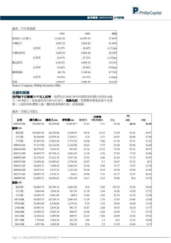 本报告对康美药业(600518.SH)的2018年半年度业绩进行了分析,并给出了投资建议。