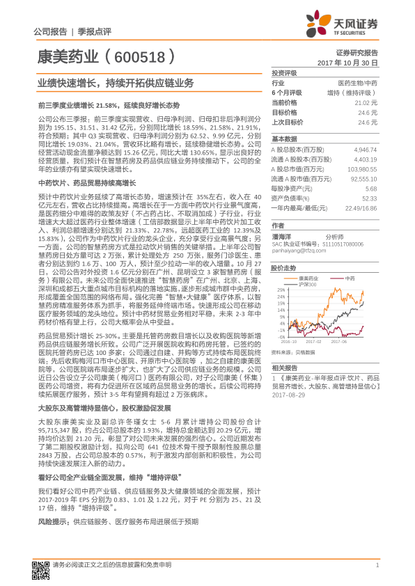 康美药业的季报显示,公司业绩保持稳健增长,主要得益于中药饮片和药品贸易的快速发展。智慧药房战略的推进是公司业绩增长的重要驱动力。同时,大股东及高管的增持以及股权激励计划,反映了对公司未来发展的信心。报告维持对康美药业的“增持”评级,并预测未来几年公司盈利将持续增长。