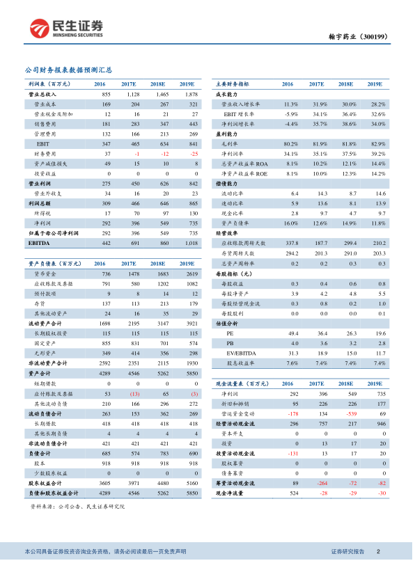 报告预测了公司未来三年的盈利情况,并维持“谨慎推荐”评级,但同时也提示了国内制剂和海外原料药销售不及预期的风险。