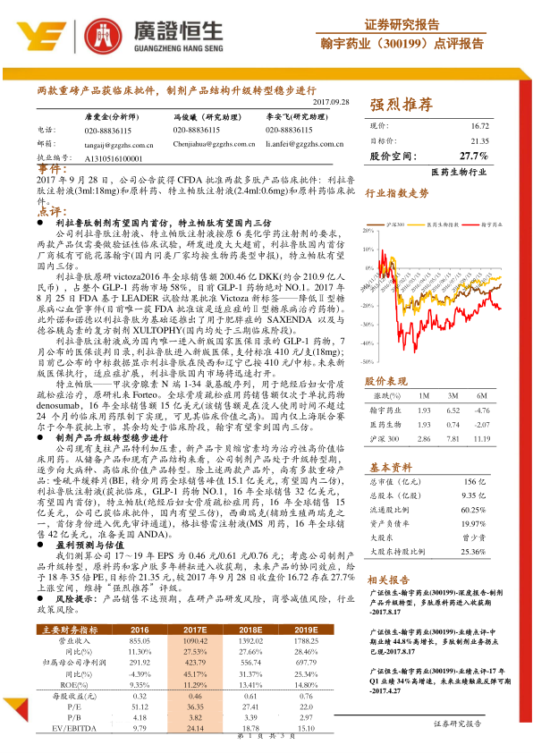 翰宇药业凭借两款重磅多肽产品利拉鲁肽和特立帕肽获得临床批件,开启了制剂业务升级转型的新篇章。这些产品在全球市场已验证其巨大价值,在国内市场亦具备首仿或三仿的竞争优势,并受益于医保政策支持,有望迅速放量。公司整体战略聚焦高价值制剂产品,丰富的产品管线和稳健的财务增长预期,共同支撑其“强烈推荐”的投资评级。尽管存在销售和研发风险,但公司在多肽领域的深耕和产品结构的优化,预示着其未来业绩的持续增长和市场竞争力的提升。
