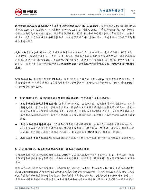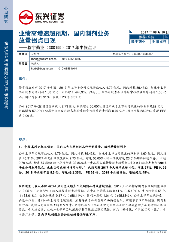2017年中报点评:业绩高增速超预期,国内制剂业务放量拐点已现