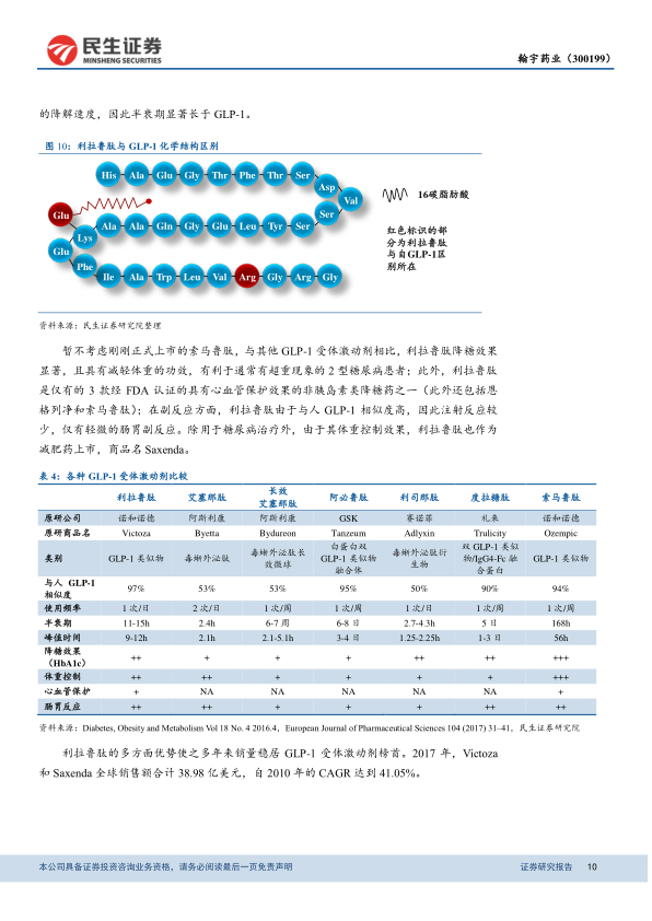 利拉鲁肽原料药: 利拉鲁肽作为GLP-1受体激动剂的领头羊,全球销量持续增长,2017年原研制剂Victoza和Saxenda全球销售额合计38.98亿美元。美国市场是其主要市场,原研制剂专利挑战持续推进,仿制药有望于2019年陆续上市。翰宇药业是目前完成美国利拉鲁肽DMF备案的5家生产商之一,产品已获得多家国际仿制药巨头的认可。目前,注册级原料药正在持续放量,武汉一期工厂预计2018年第三季度试生产,设计产能达1000kg,将有效解决产能瓶颈,为2019年仿制药上市后商业级原料药需求的跨越式增长奠定基础。报告估算,若公司利拉鲁肽原料药(降糖适应症)成为首仿或二仿产品的供应商,年销售收入有望分别达到15.59亿元或9.36亿元。