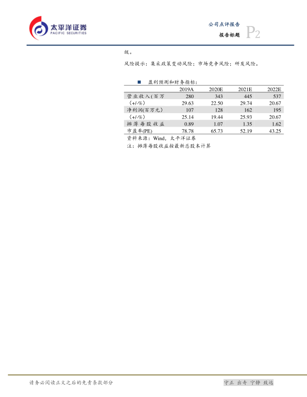 风险提示:集采政策变动风险;市场竞争风险;研发风险。