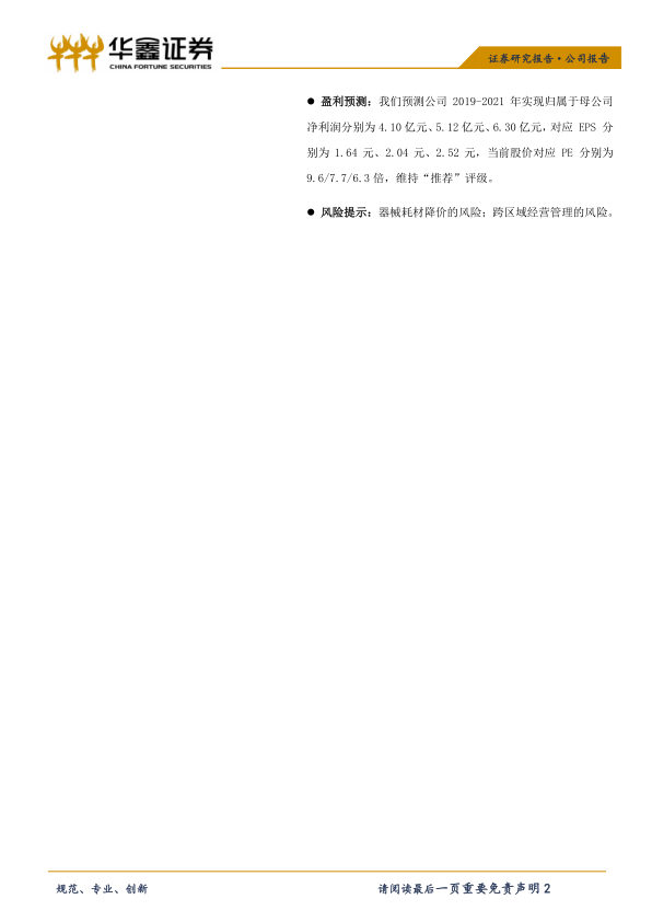 本报告显示,嘉事堂2019年上半年业绩符合预期,器械批发业务快速增长,经营效率显著提升。公司在医药批发业务保持稳健增长的同时,器械批发业务表现亮眼,有望受益于行业集中度提升。通过加强应收账款管理,公司的经营活动现金流得到显著改善。维持“推荐”评级,但需关注器械耗材降价和跨区域经营管理的风险。