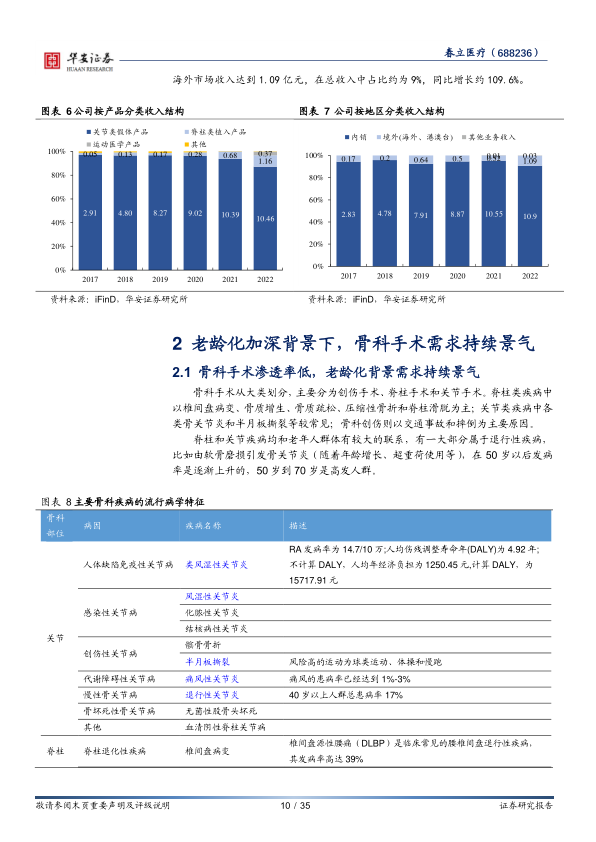 (1)公司在关节领域有超20年的技术积累,多款创新产品领先同行推出市场,如维他命E高交联聚乙烯髋、膝产品等。公司的单髁类产品同时拥有活动平台和固定平台两款,优势互补,近年来也保持较高的增速增长。