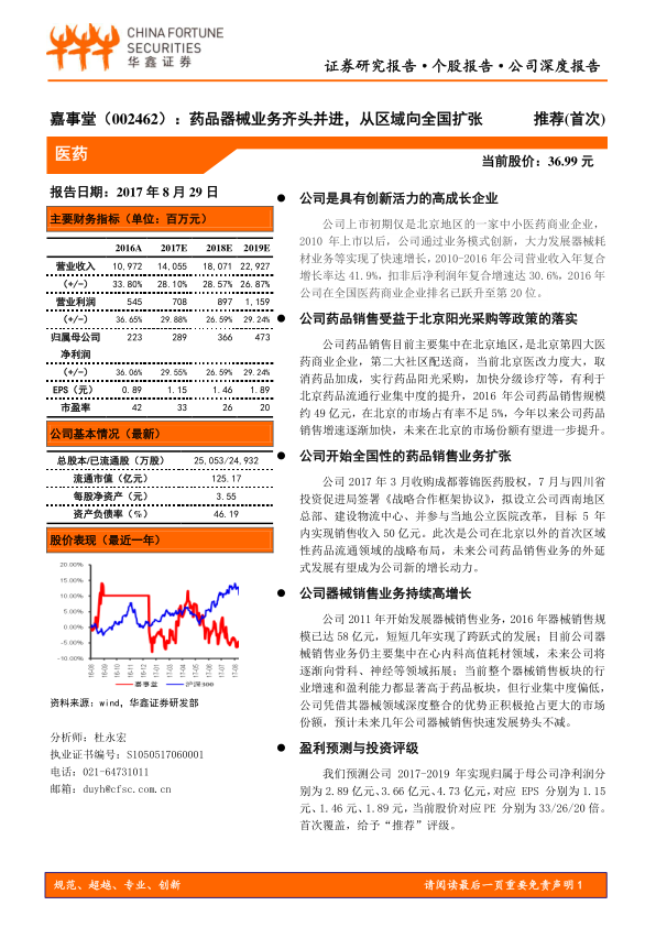 嘉事堂作为一家具有创新活力的医药商业企业,通过业务模式创新和积极的区域扩张,实现了快速增长。公司在北京药品市场占据重要地位的同时,积极向全国扩张,尤其是在西南地区的战略布局,有望成为新的增长点。药品销售受益于北京阳光采购等政策,器械销售业务持续高增长,GPO模式可复制性强,公司未来发展潜力巨大。