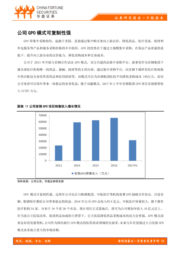 GPO模式可复制性强,公司通过与首钢等机构合作,实现了降本增效的双赢局面。在当前公立医院改革,取消药品加成的大背景下,公立医院降低药品采购成本的动力会更强,GPO 模式迎来良好的发展契机,公司作为国内践行GPO模式的医药商业领域的先驱者,未来几年有望通过大力发展GPO 模式业务抢占更大的市场份额。