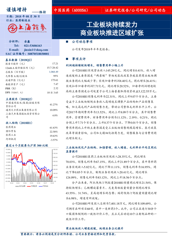 本报告对中国医药(600056)维持“谨慎增持”评级,核心观点如下: