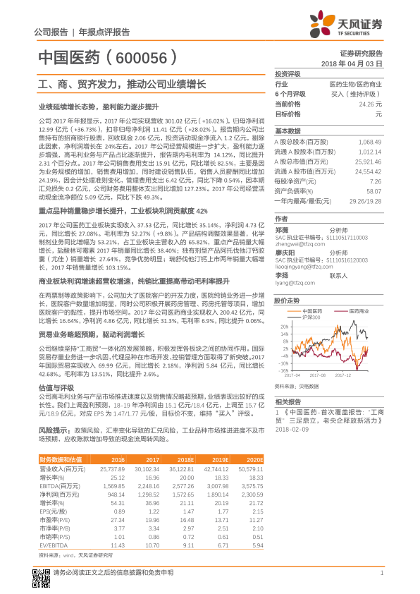 公司坚定执行“工商贸”一体化的发展战略,成功实现了各业务板块的协同发力,共同推动了整体业绩的增长。工业板块作为利润的核心贡献者,其净利润占比高达42%,且化学制剂业务实现53.21%的高速增长,重点产品销量亦表现突出,如盐酸林可霉素、阿托伐他汀钙胶囊和瑞舒伐他汀钙的销量分别增长38.40%、27.64%和103.15%,彰显了其强大的产品竞争优势。商业板块在“两票制”等政策背景下,通过积极开发医院客户、提升纯销比重以及开展药房管理/托管项目,有效增加了客户黏性并扩大了市场空间,实现了31.3%的净利润增长,增速超越营收增速。国际贸易业务则通过巩固存量业务和代理品种的市场突破,实现了42.68%的净利润增长,略超市场预期,进一步驱动了公司整体利润的提升。基于各板块的良好表现和协同效应,分析师上调了公司2018-2019年的盈利预测,并维持“买入”评级,预示着公司未来业绩有望延续稳健增长态势。
