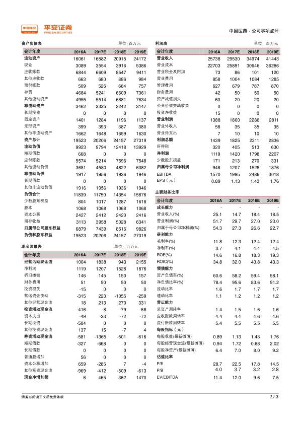 • P/E: 2016年为28.7倍,预计2017-2019年分别为22.5倍、17.8倍、14.5倍。