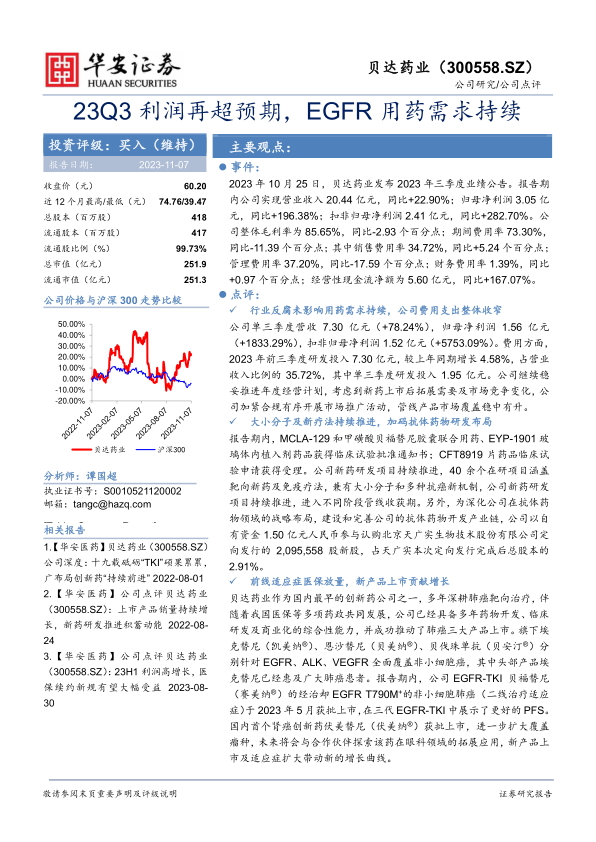 23Q3利润再超预期,EGFR用药需求持续