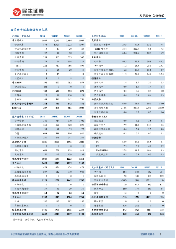 2020年1月16日,天宇股份发布业绩预告,预计2019年归母净利润为5.65-6.14亿元,同比增长245-275%。