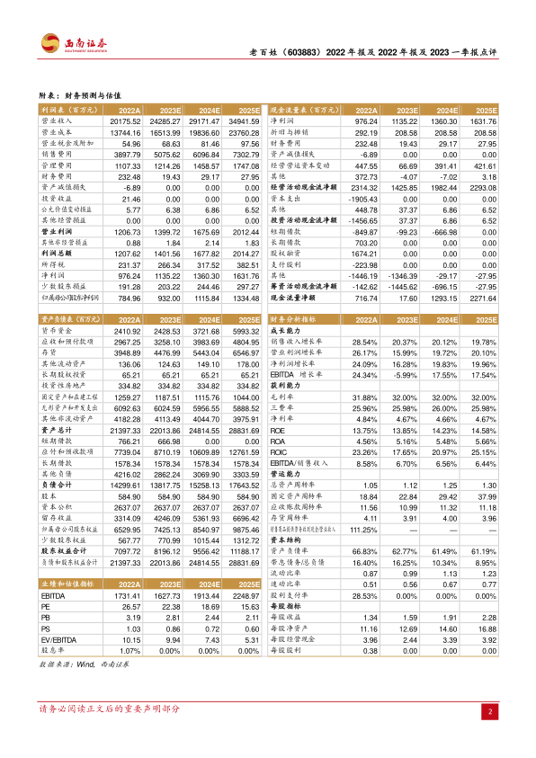 本报告对老百姓(603883)2022年年报及2023年一季报进行了分析,核心观点如下: