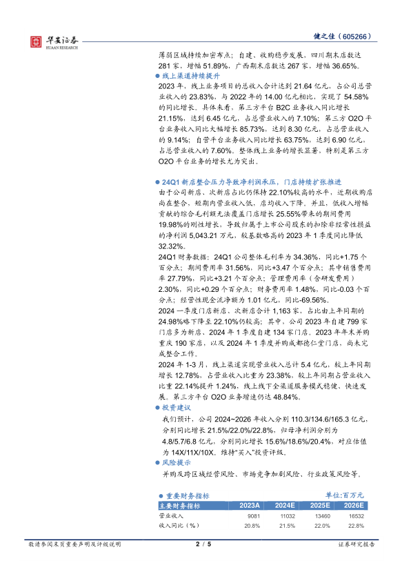 尽管面临短期压力,但考虑到公司未来的增长潜力,维持对健之佳的“买入”投资评级。投资者应关注并购及跨区域经营风险、市场竞争加剧风险以及行业政策风险。