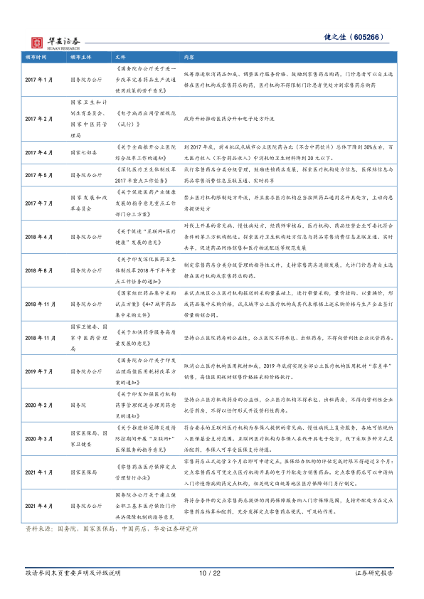 中国药店行业正迎来多重利好叠加的发展机遇。长期来看,药店连锁率的提升是确定性趋势,与发达国家相比仍有巨大增长空间。中期而言,国家政策持续推动处方外流,如“零加成”、带量采购和“双通道”等,使得零售药店在处方药销售中的价值日益凸显。短期内,随着2022年行业逐步恢复以及疫情防控政策的优化调整,药店板块的内生增长和增量空间值得期待。这些宏观趋势为健之佳等头部连锁药店的持续发展提供了坚实基础。