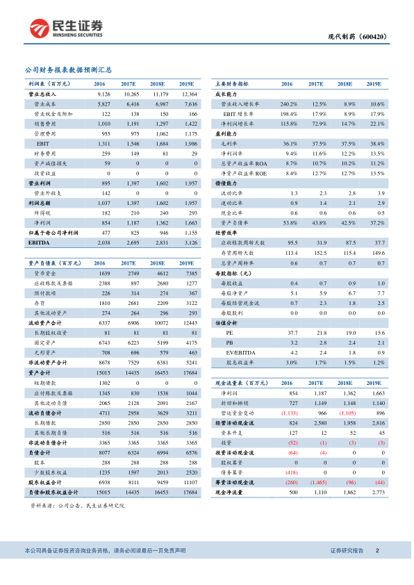 本报告对现代制药(600420)进行简评,核心观点如下: