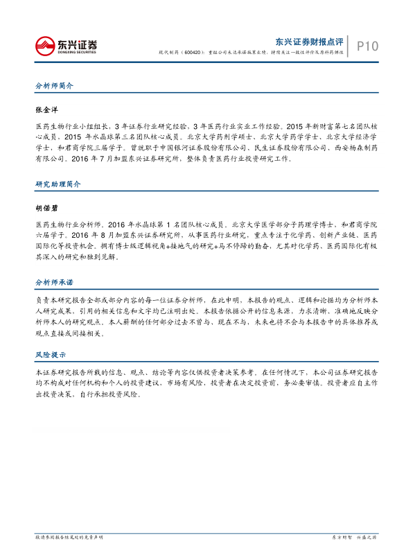 现代制药2017年业绩受重组公司拖累,但公司作为国药集团化药平台,未来增长潜力巨大。公司拥有众多优质品种、新进医保品种和一致性评价品种,未来改善空间巨大。预计公司将受益于经营效率提升、原料药提价、新产能投产、一致性评价品种的推进以及医保目录的弹性。维持“强烈推荐”评级。