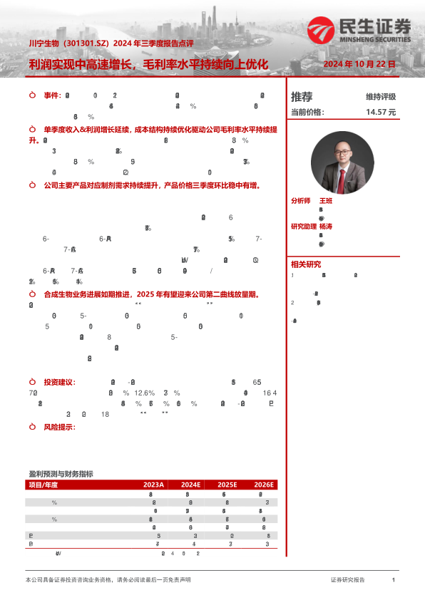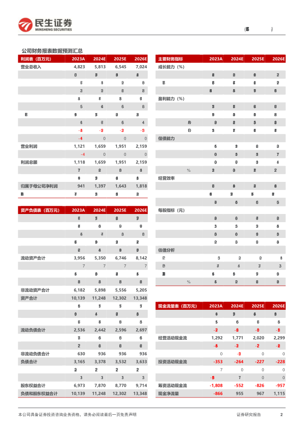 投资建议:我们预测2024-2026年公司分别实现营业收入58.1、65.5和70.2亿元,分别同比增长20.5%、12.6%和7.3%;归母净利润分别为14.0、16.4和18.2亿元,分别同比增长48.5%、17.6%、10.6%。对应2024-2026年PE倍数分别为23、20和18倍,维持“推荐”评级。
