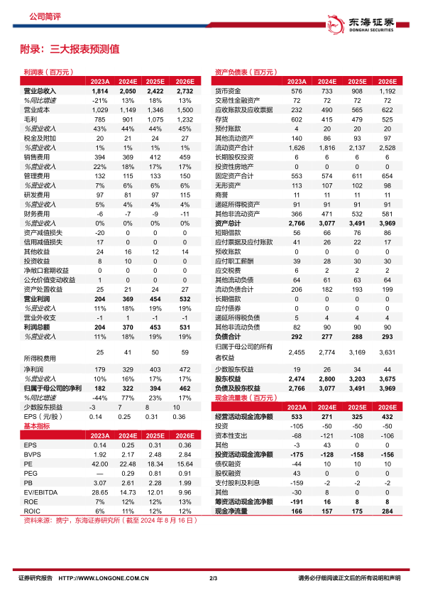 投资建议:我们预计公司2024-2026年营收分别为20.50/24.22/27.32亿元,归母净利润分别为3.22/3.94/4.62亿元,对应EPS分别为0.25/0.31/0.36元,对应PE分别为22.48/18.34/15.64,维持“买入”评级。