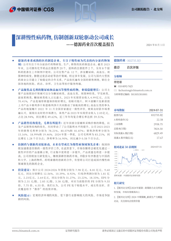 德源药业首次覆盖报告:深耕慢性病药物,仿制创新双轮驱动公司成长