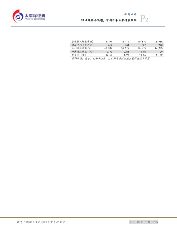 Q3业绩符合预期,营销改革成果持续显现