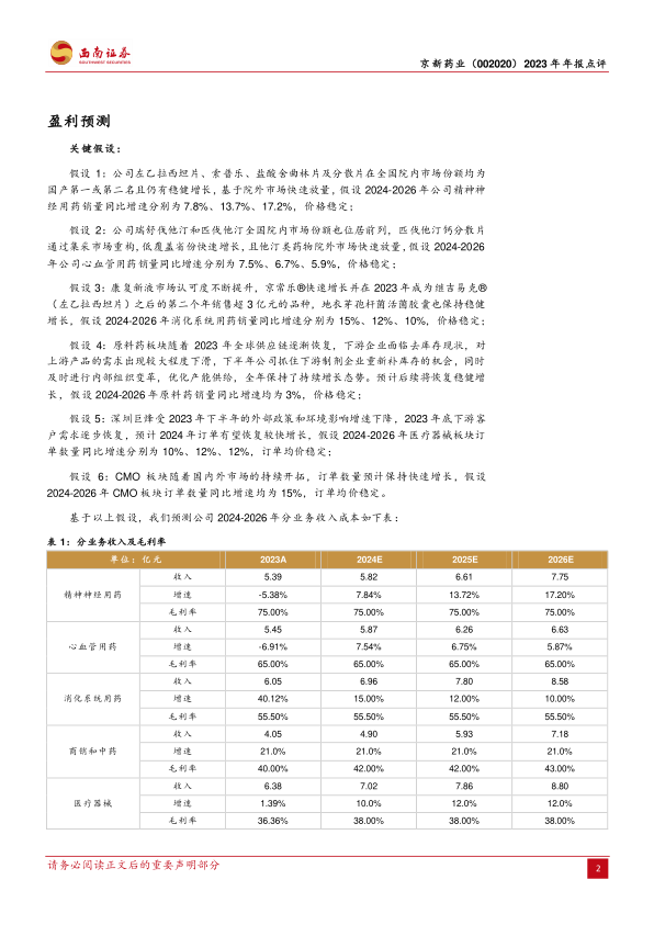 本报告对京新药业(002020)2023年年报进行了深入分析,核心观点如下: