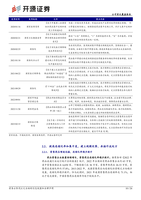 政策加速处方外流,行业内“集中度+连锁化率”提升为大趋势