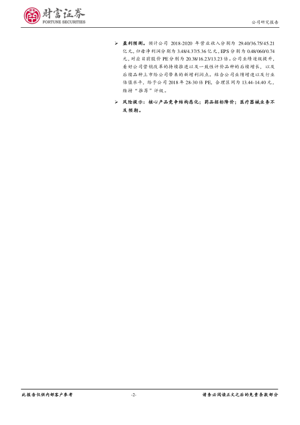 预计公司2018-2020年营业收入分别为29.40/36.75/45.21亿元,归母净利润分别为3.48/4.37/5.36亿元,EPS分别为0.48/0.60/0.74元。维持“推荐”评级,合理区间为13.44-14.40元。