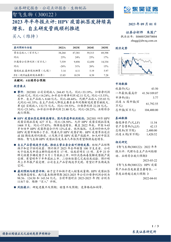 2023年半年报点评:HPV疫苗批签发持续高增长,自主研发管线顺利推进