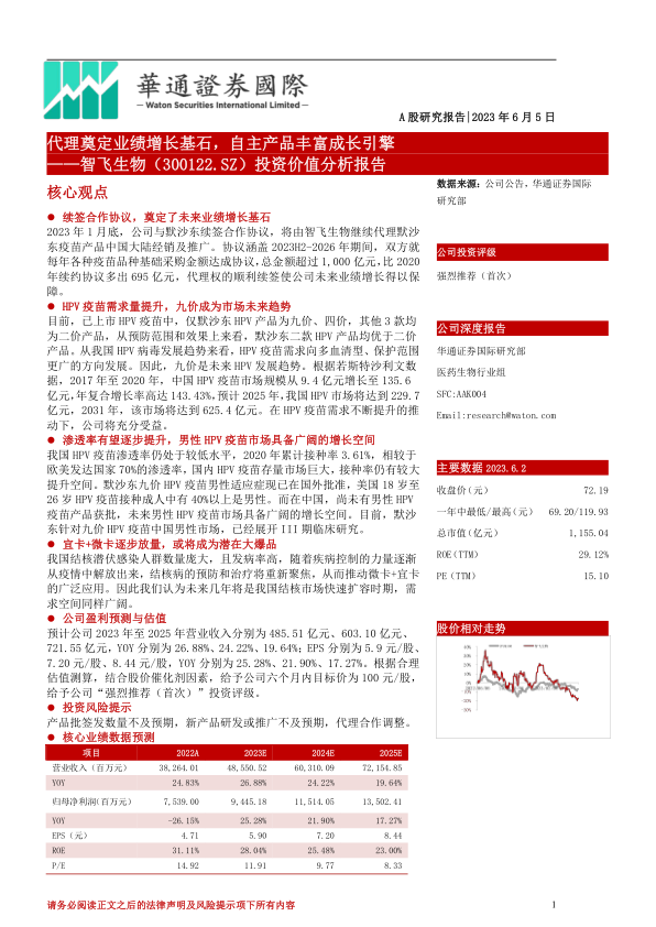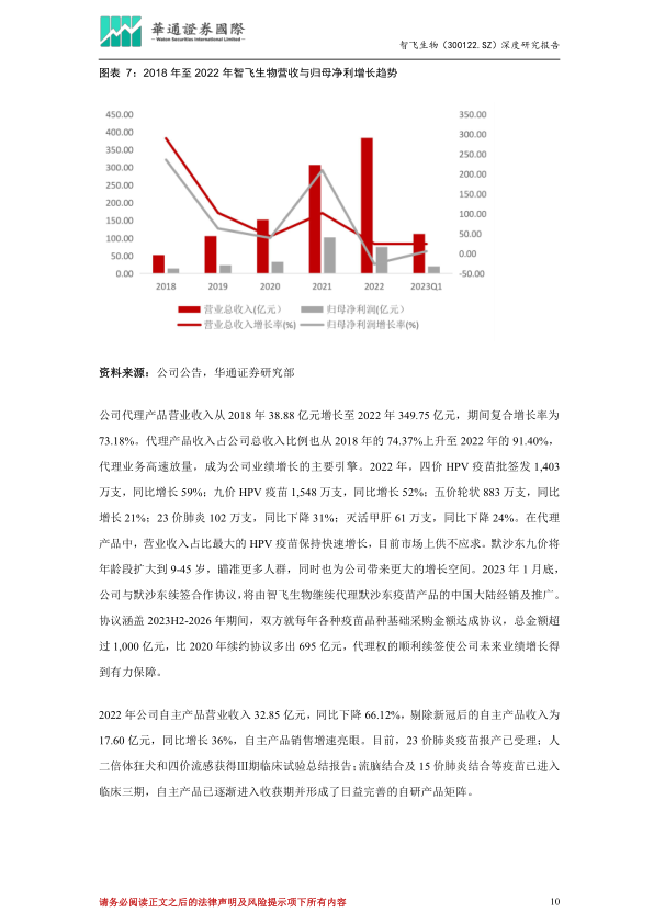 2023年1月底,公司与默沙东续签合作协议,将由智飞生物继续代理默沙东疫苗产品中国大陆经销及推广。协议涵盖2023H2-2026年期间,双方就每年各种疫苗品种基础采购金额达成协议,总金额超过1,000亿元,比2020年续约协议多出695亿元,代理权的顺利续签使公司未来业绩增长得以保障。