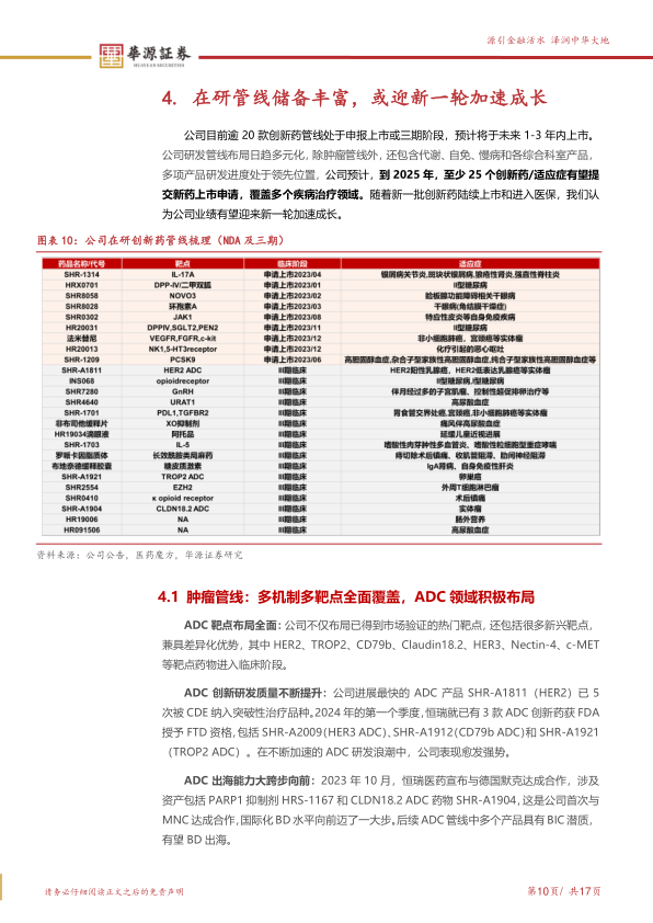 后续GLP-1、ADC等在研大品种有望在未来1-3年内获批上市,驱动公司新一轮业绩增长。