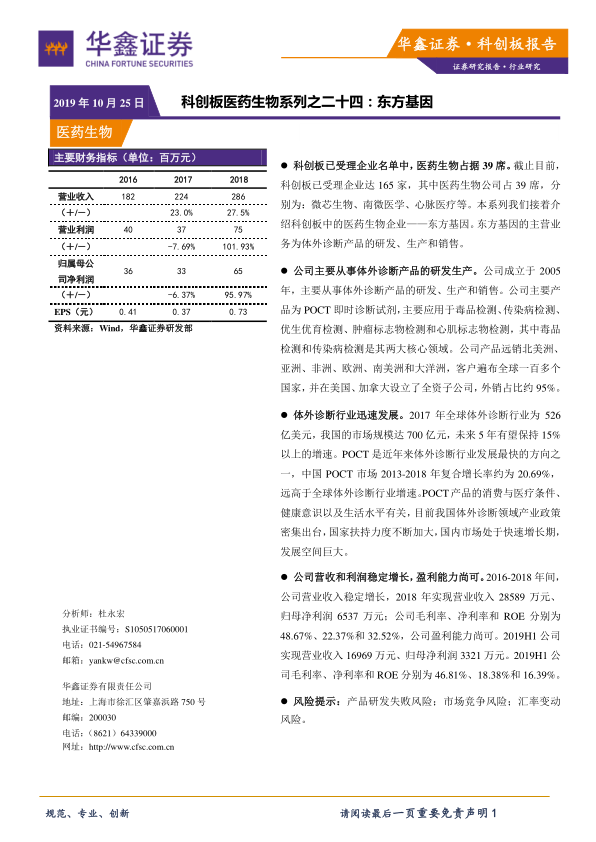 科创板医药生物系列之二十四:东方基因