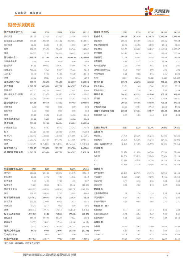 预计2019年是公司加强终端动销,改善经营现金流的重要一年,公司进一步完善市场布局和营销体系建设,有效提升产品的市场占有率和终端动销率。预计2019-2021年EPS分别为1.44元、1.90元和2.34元,维持“买入”评级。