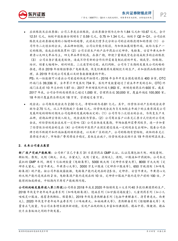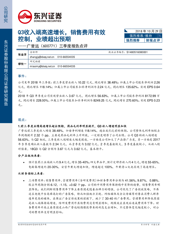 本报告对广誉远的三季度业绩进行了深入分析,指出公司业绩增长超出预期,盈利能力显著提升,销售费用得到有效控制。同时,公司通过新厂投产突破产能瓶颈,战略发展进入新阶段,有望在经典国药和保健酒领域迎来新的增长点。维持“强烈推荐”评级,看好公司未来的发展前景。