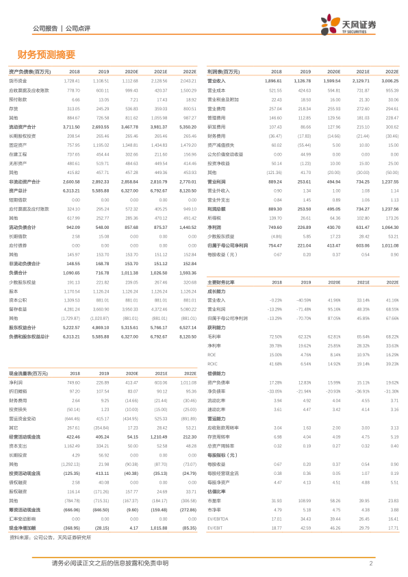 风险提示: 疫情风险;产品研发风险;市场竞争加剧风险