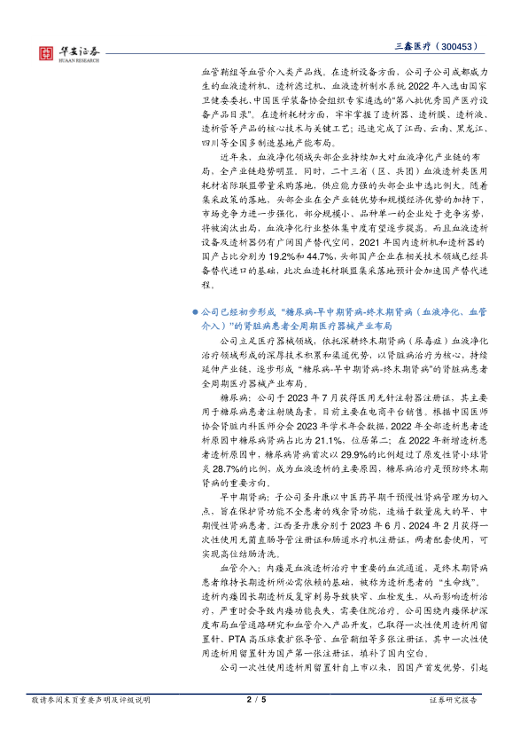 公司已经初步形成“糖尿病-早中期肾病-终末期肾病(血液净化、血管介入)”的肾脏病患者全周期医疗器械产业布局