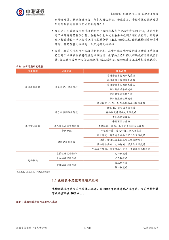 风险提示:下游养殖板块持续低迷的风险、行业竞争导致疫苗降价的风险、新产品上市进度不及预期风险、新品市场接受度低的风险。