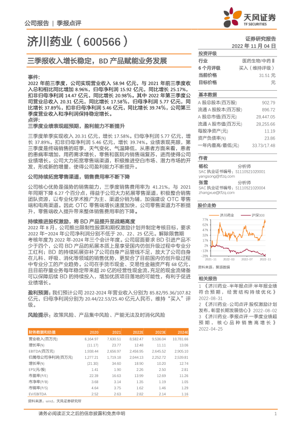 本报告分析了济川药业2022年三季报,核心观点如下:
