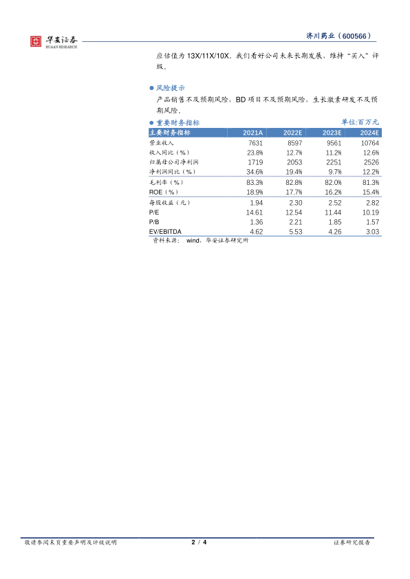 我们维持此前预测, 我们预计公司 2022~2024 年收入分别86.0/95.6/107.6 亿元,分别同比增长 12.7%/11.2%/12.6%,归母净利润分别为 20.5/22.5/25.3 亿元,分别同比增长 19.4%/9.7%/12.2%,对应估值为 13X/11X/10X。我们看好公司未来长期发展,维持“买入”评级。