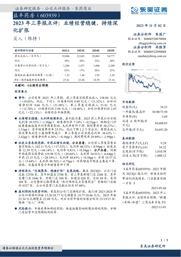 益丰药房2023年三季报显示,公司业绩保持稳健增长,同时持续深化区域聚焦和稳健扩张战略。