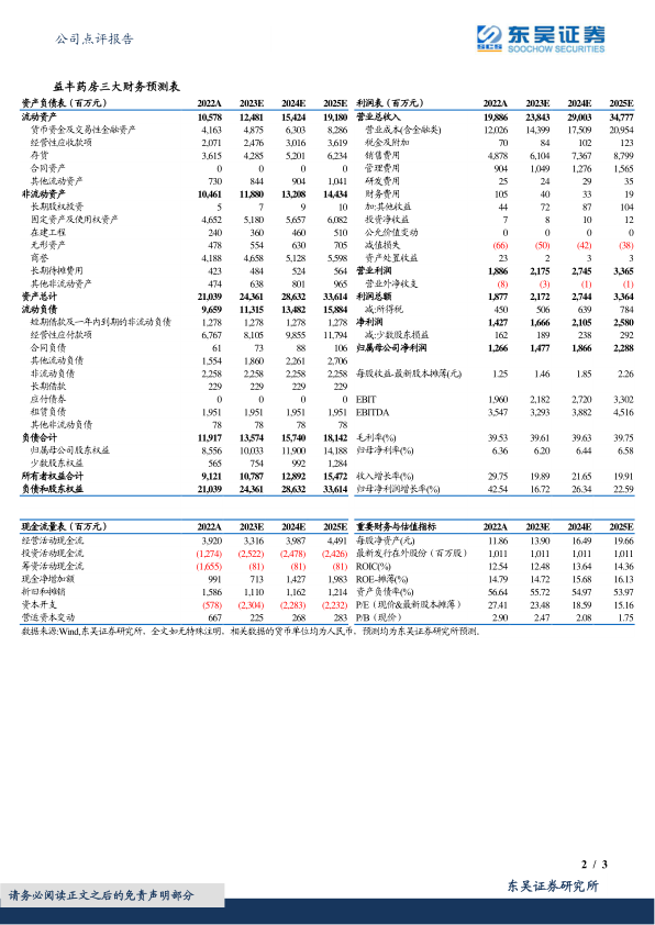 业绩增长稳健,毛利率短期承压。盈利能力看,2023前三季度公司实现毛利率39.55%(-1.38pp);销售净利率7.10%(+0.23pp),短期受门诊统筹落地速度不同等因素影响,毛利率有所下滑;期间费用率30.27%(-1.31pp),其中销售费用率25.5%,同比下降1.2个百分点,原因是收入承压带来的员工激励费用减少。单三季度公司实现毛利率38.63%(-2.42pp);销售净利率6.36%(+0.36pp);期间费用率29.89%(-2.99pp)。