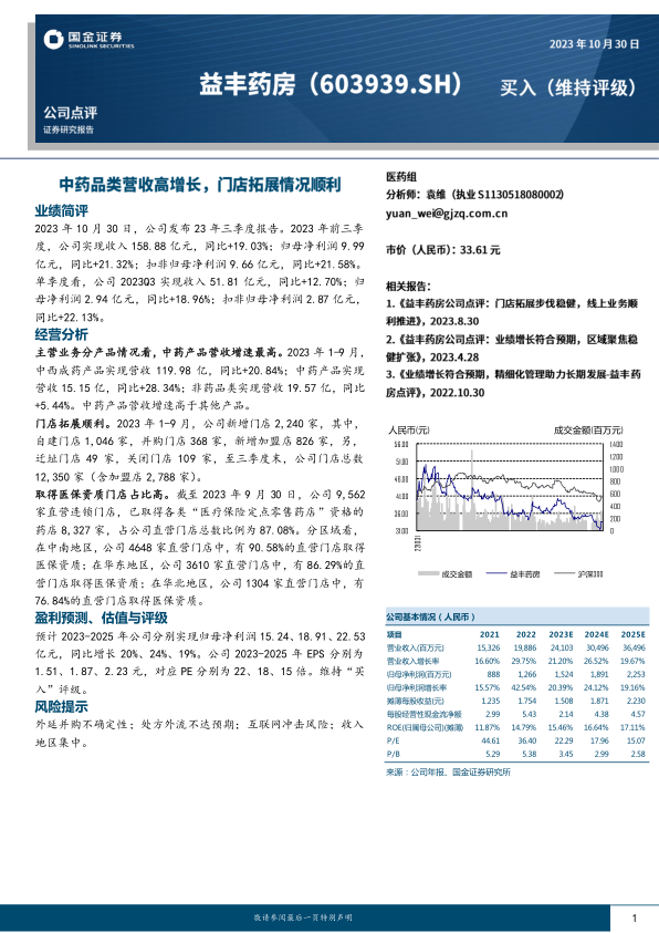 益丰药房在2023年前三季度实现了稳健的业绩增长,其中中药产品营收增速表现突出。公司积极拓展门店,并持续提升医保资质门店占比,为未来的发展奠定了坚实基础。